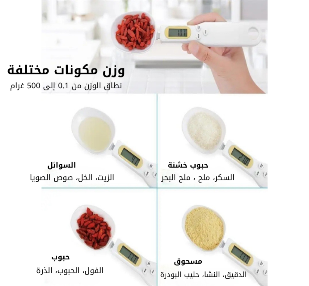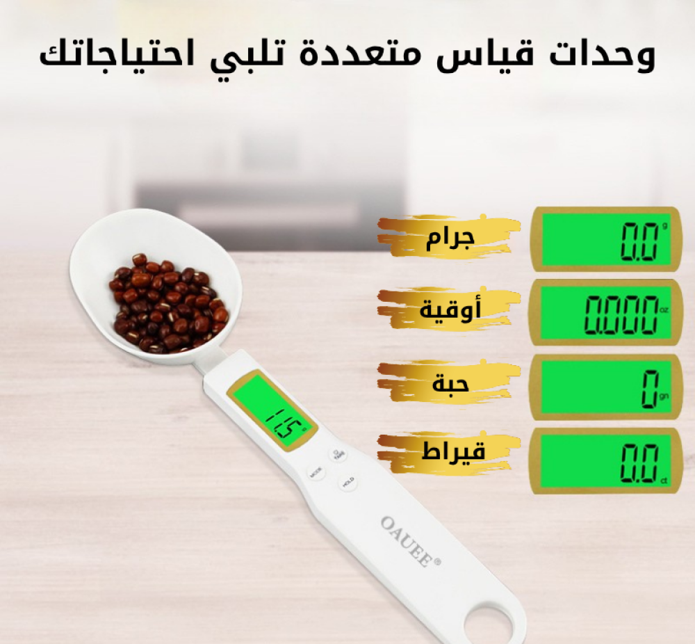 هذا المنتج عبارة عن ميزان رقمي ذو حجم صغير على شكل ملعقة يمكن استخدامه لجميع المكونات ويساعدك لمعرفة الكمية بشكل دقيق وسهل الاستخدام كما يحتوي على شاشة عرض رقمية لمعرفة مقياس الكمية بعدة وحدات قياس.